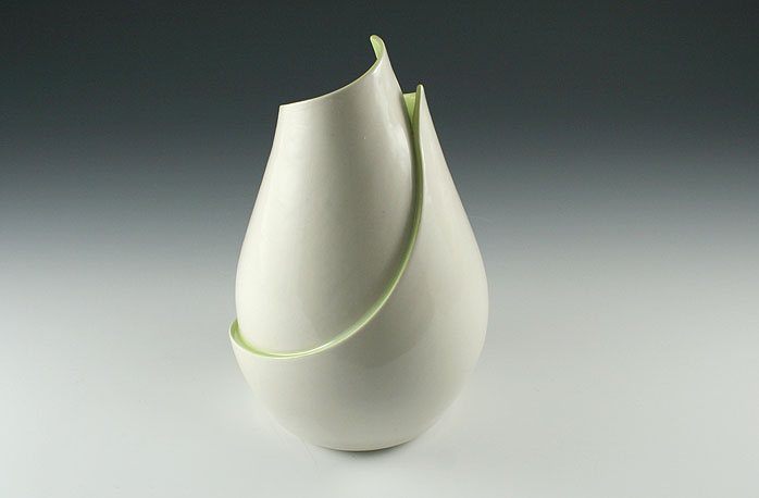 Large Curvy Vase with Green Accent